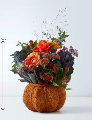 Autumnal Flower Vase Pumpkin Flowers Halloween Bouquet Etsy
